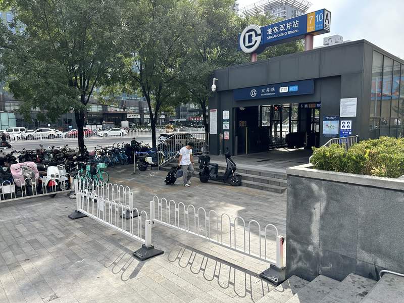 后续:在Shuangjing R&P Plaza大门前,通勤者不需要